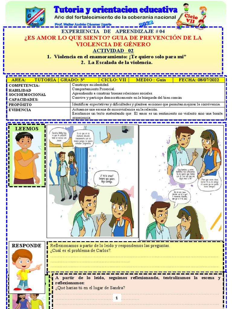AREA: TUTORÍA GRADO: 3° CICLO: VII MEDIO : Guia FECHA: 08/07/2022