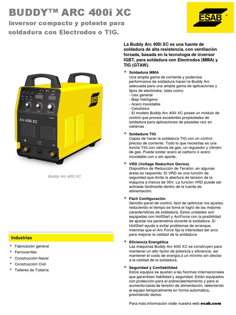 Fabricación general Las máquinas Buddy Arc 400i XC se construyen para