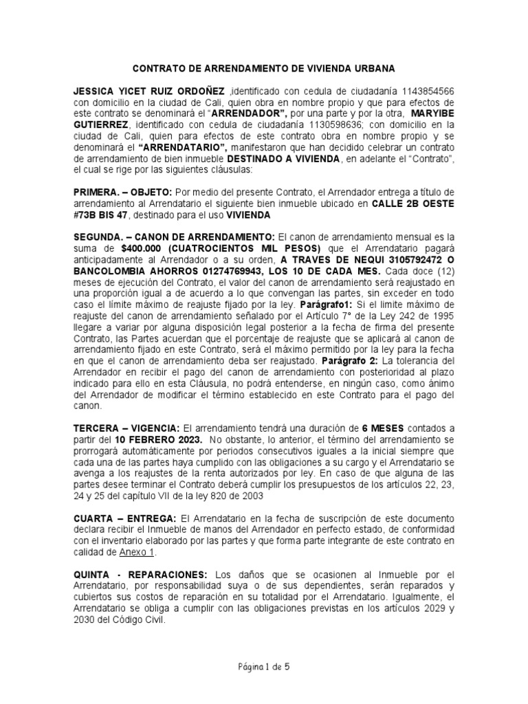CONTRATO DE ARRENDAMIENTO DE VIVIENDA URBANA