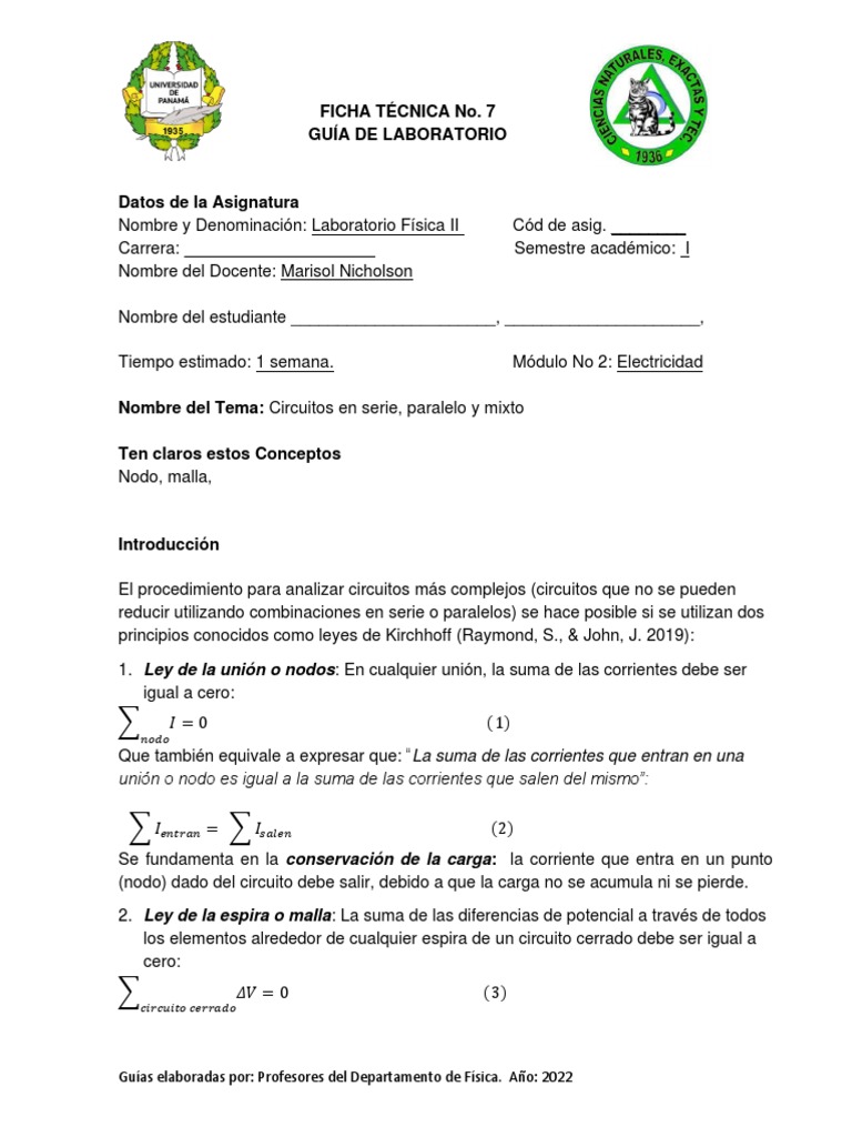 Nombre y Denominación: Laboratorio Física II Cód de asig. ________