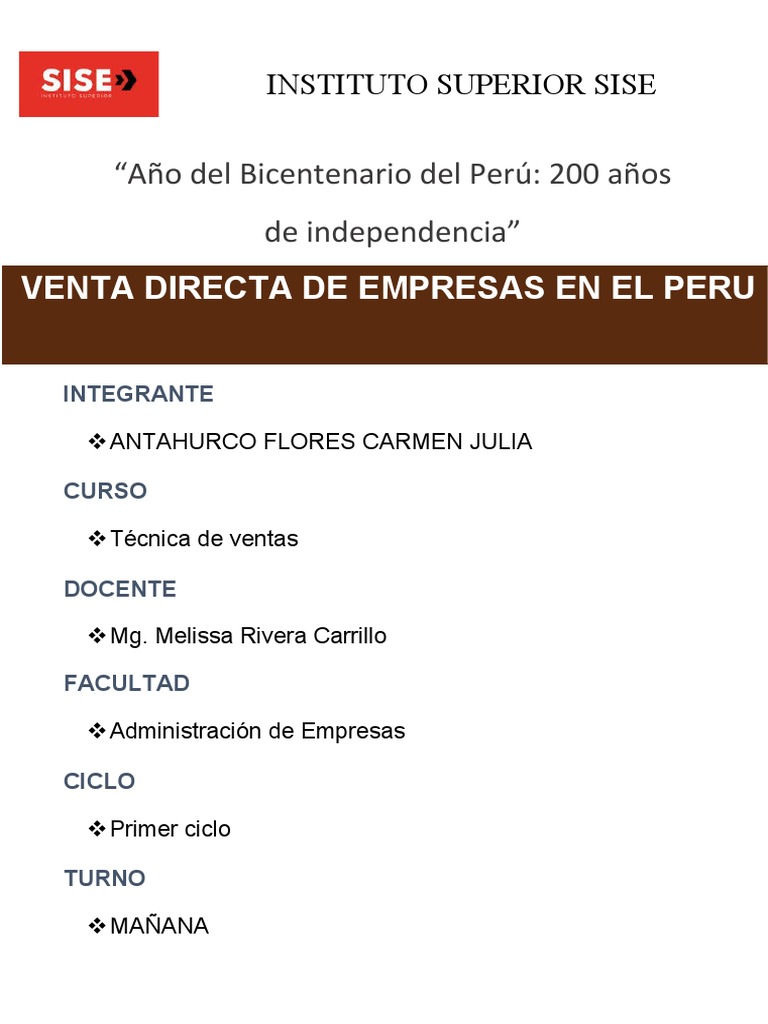 modelo de negocio de la venta directa en el Perú, no con la totalidad.