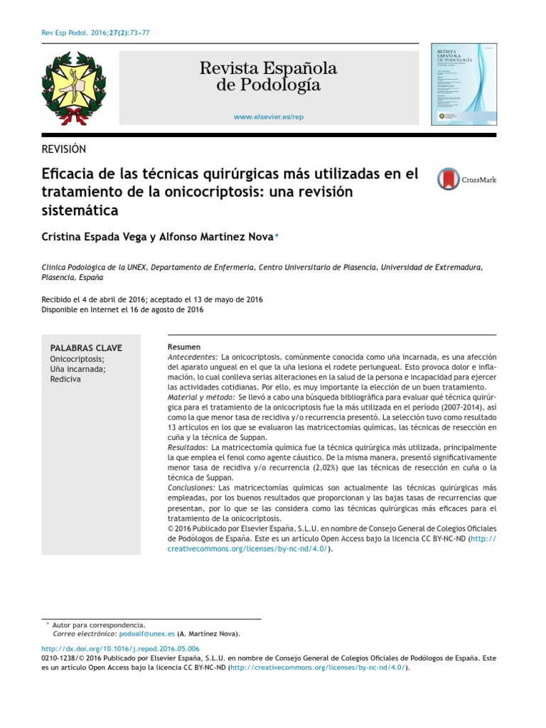 2. Martínez Nova A. Podología: Atlas de cirugía ungueal. Madrid: 2012;5:241---4.