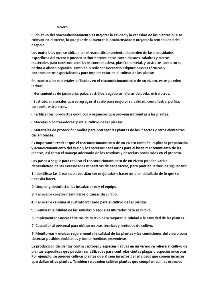 Los pasos a seguir para realizar el reacondicionamiento de un vivero pueden variar