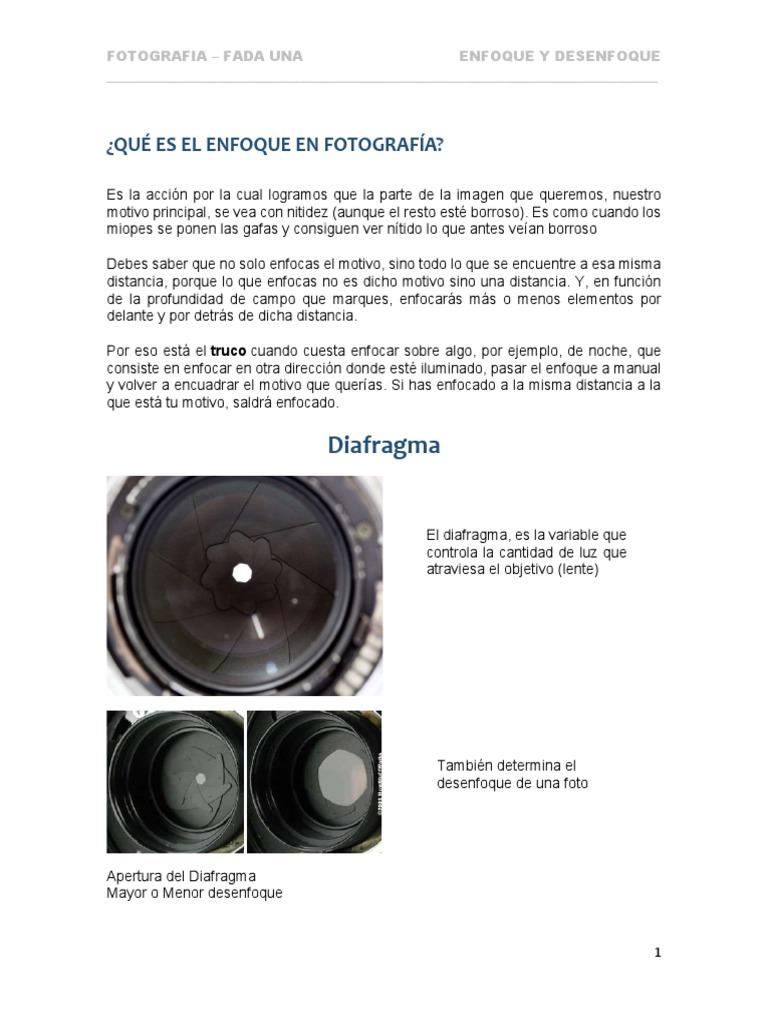 zona de la imagen enfocada. Para profundizar en la profundidad de campo, tienes este