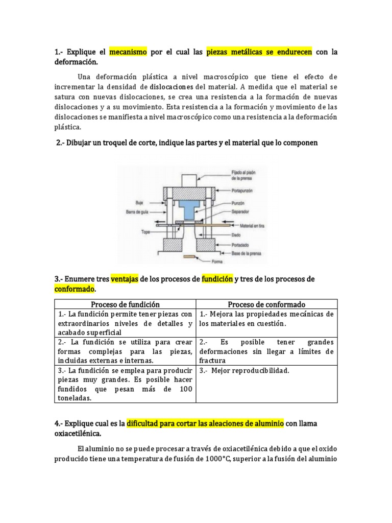 2.- Dibujar un troquel de corte, indique las partes y el material que lo componen