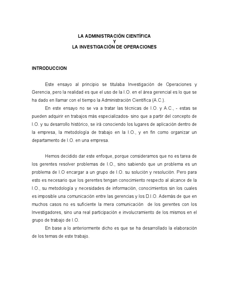Este ensayo al principio se titulaba Investigación de Operaciones y