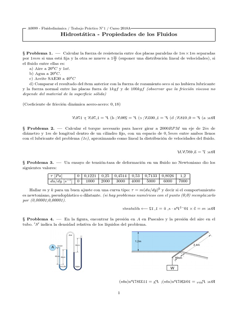 A0099 - Fluidodinámica / Trabajo Práctico N◦ 1 / Curso 2018A