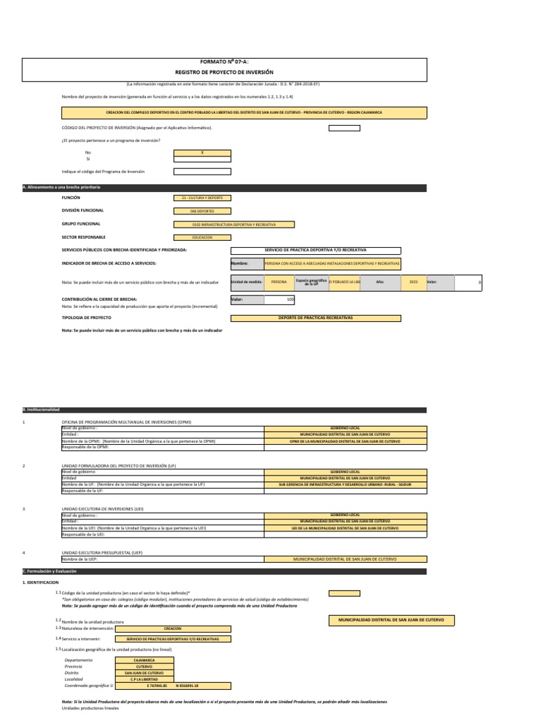 REGISTRO DE PROYECTO DE INVERSIÓN