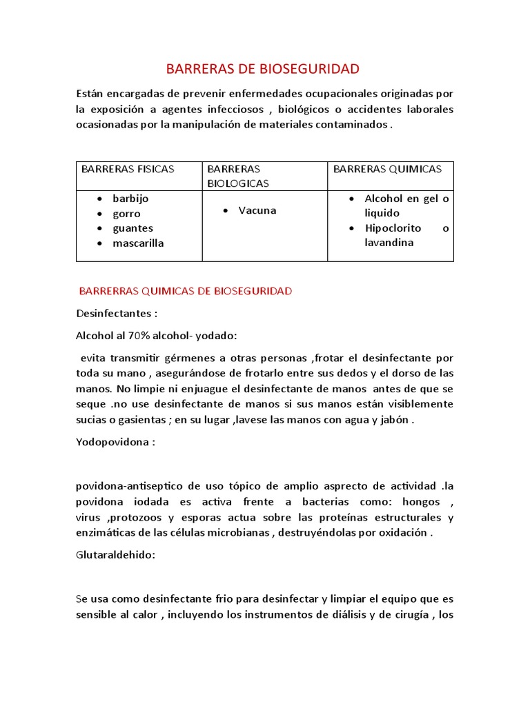 BARRERRAS QUIMICAS DE BIOSEGURIDAD