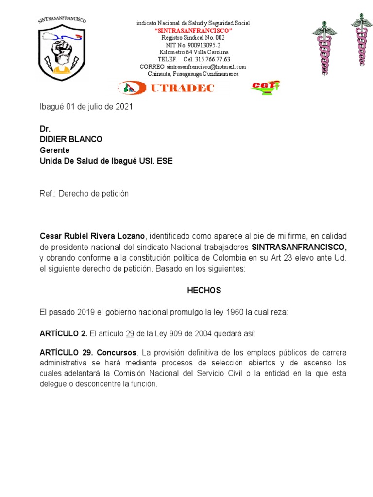 el siguiente derecho de petición. Basado en los siguientes: