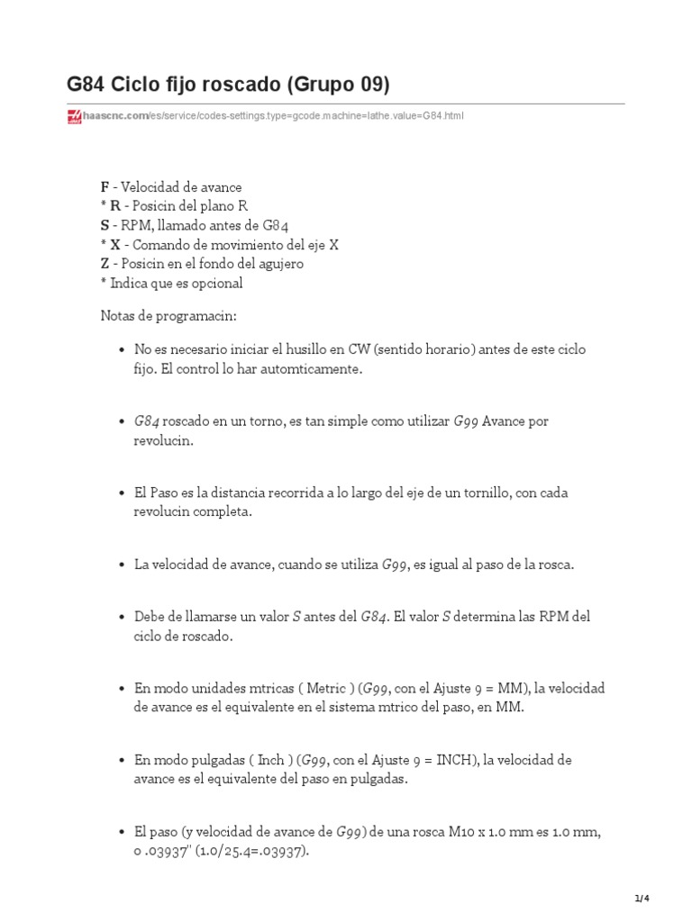 G84 roscado en un torno, es tan simple como utilizar G99 Avance por