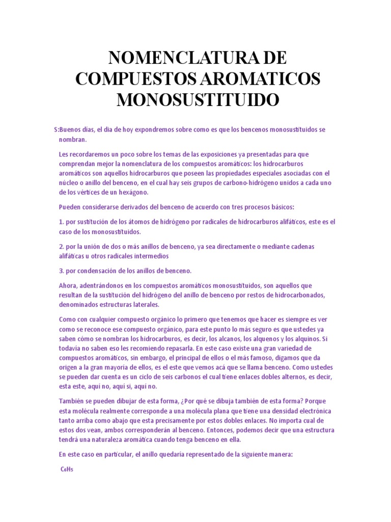 Ahora, adentrándonos en los compuestos aromáticos monosustituidos, son aquellos que