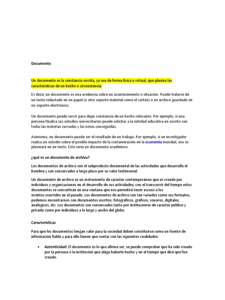 Un documento es la constancia escrita, ya sea de forma física o virtual, que plasma las