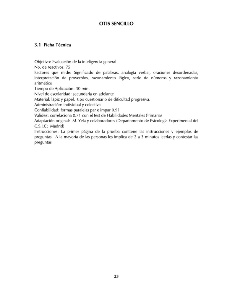 Validez: correlaciona 0.71 con el test de Habilidades Mentales Primarias