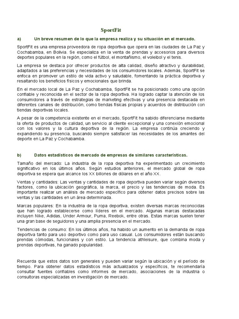 SportFit es una empresa proveedora de ropa deportiva que opera en las ciudades de La Paz y