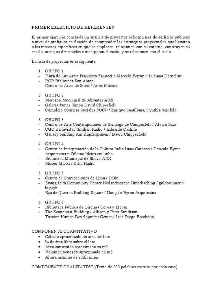 El primer ejercicio consta de un análisis de proyectos referenciales de edificios públicos