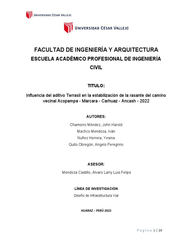 2022; OE2. Determinar de qué manera incide la adición del aditivo Terrasil