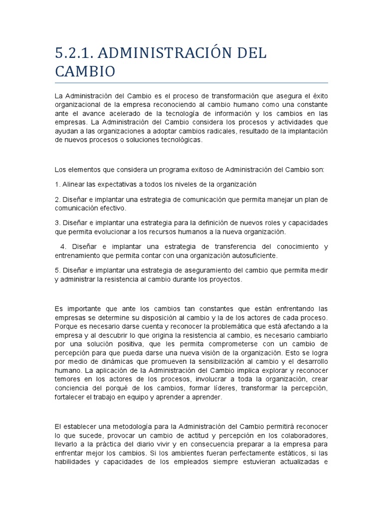 empresas. La Administración del Cambio considera los procesos y actividades que