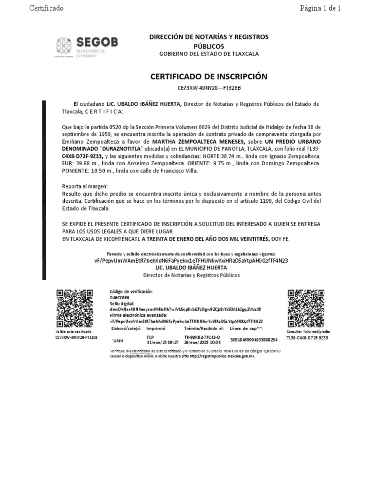 Verifique la autenticidad de este certificado y el estado de su predio. Para ello lea los códigos QR con su