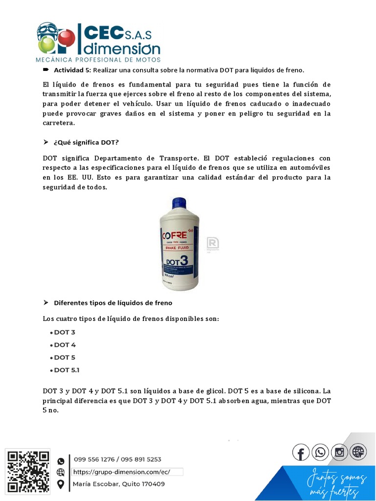 Actividad 5: Realizar una consulta sobre la normativa DOT para líquidos de freno.