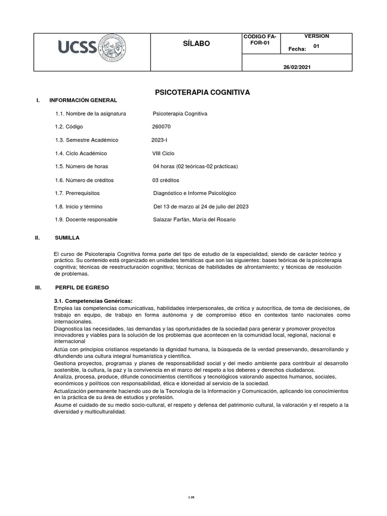 1.1. Nombre de la asignatura Psicoterapia Cognitiva