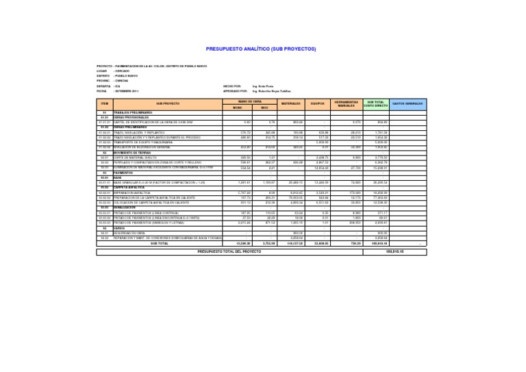 PRESUPUESTO ANALÍTICO (SUB PROYECTOS)