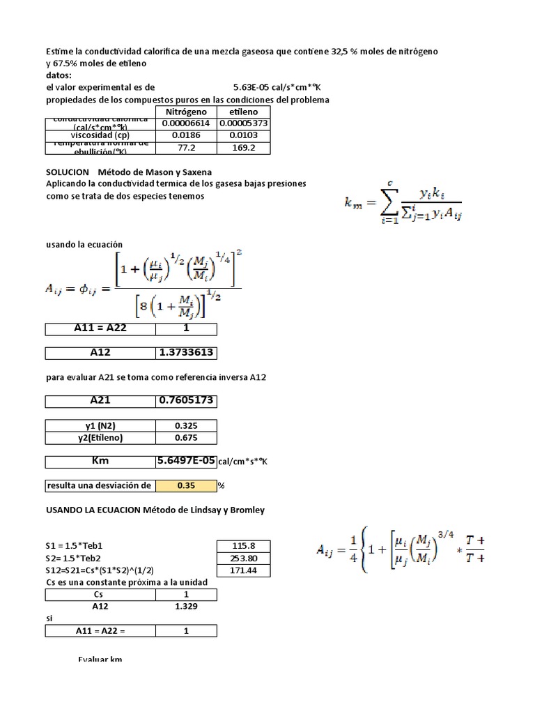 la conductividad calorifica de la mezcla binaria se calcula mediante la ecuación