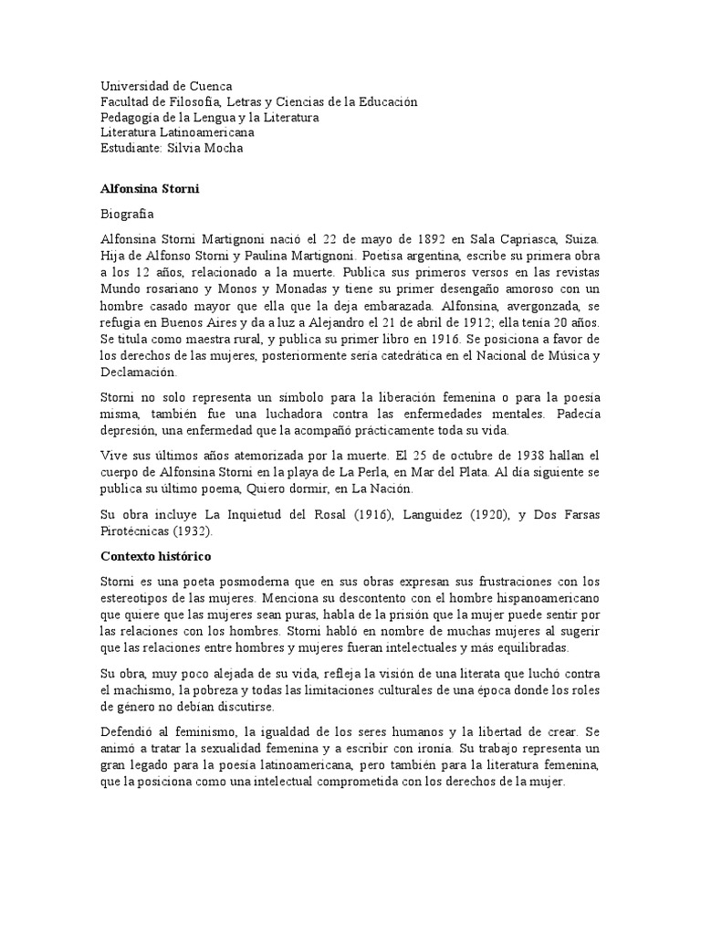 Hija de Alfonso Storni y Paulina Martignoni. Poetisa argentina, escribe su primera obra