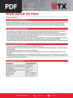 Es un Mortero Hidrulico AUTONIVELANTE, de fraguado acelerado, para rejuvenecer y nivelar superficies de concreto mal acabadas, con imperfecciones, con malas pendientes, daadas, erosionadas, fisuradas, y desgastadas. NIVELTEX ofrece una formulacin 100% mineral, no txica, no contaminante, y no metlica, para realizar trabajos de nivelacin y rejuvenecimiento en pisos y losas, actuando como capa intermedia entre la estructura y el acabado decorativo requerido (alfombra, duela, piso laminado, piso cermico, loseta vinlica, etc.). Adems, por su expansin controlada (no se contrae), NIVELTEX recubrir irregularidades e imperfecciones en concreto sin riesgo de desprendimiento, separacin, delaminacin an al aplicarse en capas delgadas (espesor mnimo 3 mm). a) Mortero de fraguado acelerado, endurece aproximadamente en 120 minutos b) No se contrae al fraguar evitando as su desprendimiento del substrato c) Buena Resistencia Mecnica a 24 horas para soportar trnsito ligero d) Rpida liberacin de humedad de la mezcla para colocar acabados de desgaste e) No es txico, no contamina, y no despide gases durante su aplicacin f) No Metlico, al no contener hierro, no presenta oxidacin g) Muy Verstil al instalarse como capa de rejuvenecimiento en espesores de 3 a 20 mm Se recomienda ampliamente para rejuvenecimiento y nivelacin de pisos en general, en interiores, para recibir algn acabado decorativo que soporte trnsito peatonal constante como duela, alfombra, loseta, y dems acabados utilizados comnmente en hotelera, oficinas, centros comerciales, locales comerciales, laboratorios, clnicas, hospitales, cines, residencias, y restaurantes. Saco con 25 kgs de producto en polvo Gris