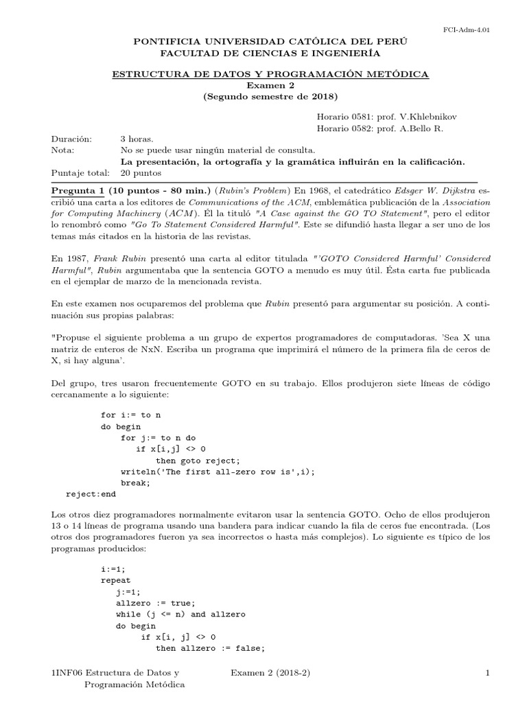 Pregunta 1 (10 puntos - 80 min.) (Rubin’s Problem) En 1968, el catedrático Edsger W. Dijkstra es-