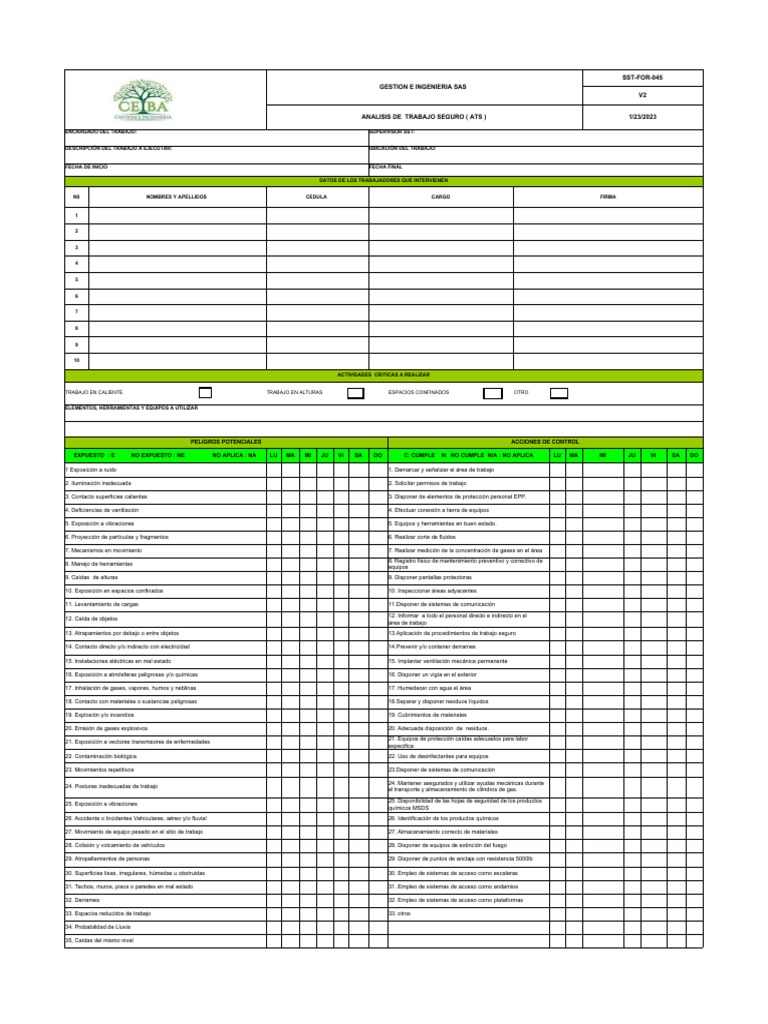 ANALISIS DE TRABAJO SEGURO ( ATS ) 1/23/2023