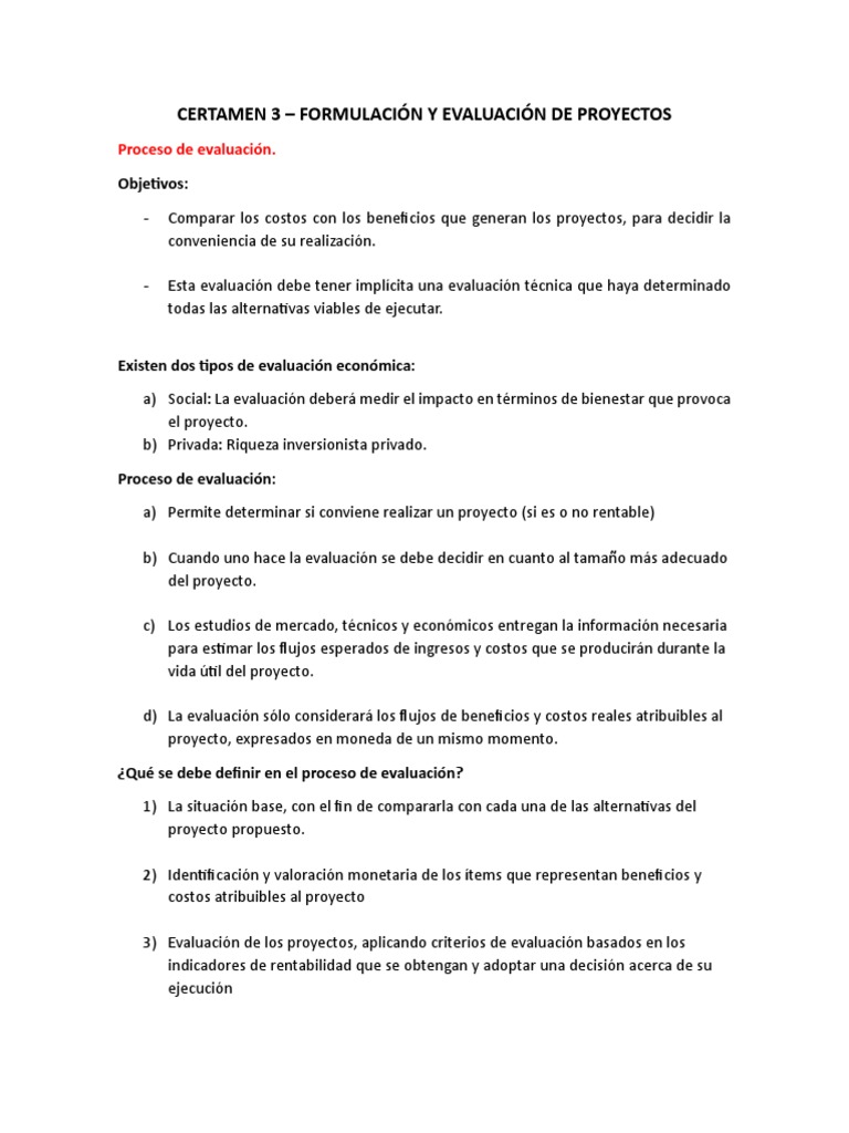 CERTAMEN 3 – FORMULACIÓN Y EVALUACIÓN DE PROYECTOS