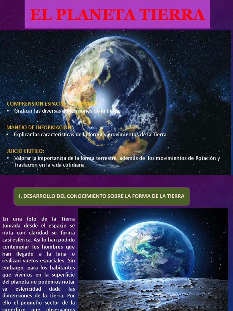 • Explicar las características de la forma y movimientos de la Tierra.