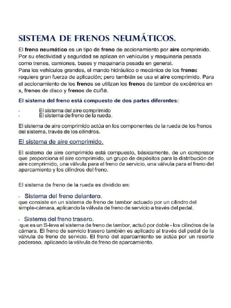 comprimido y a la operacién de frenado en un vehiculo de gran tamaiio y peso.
