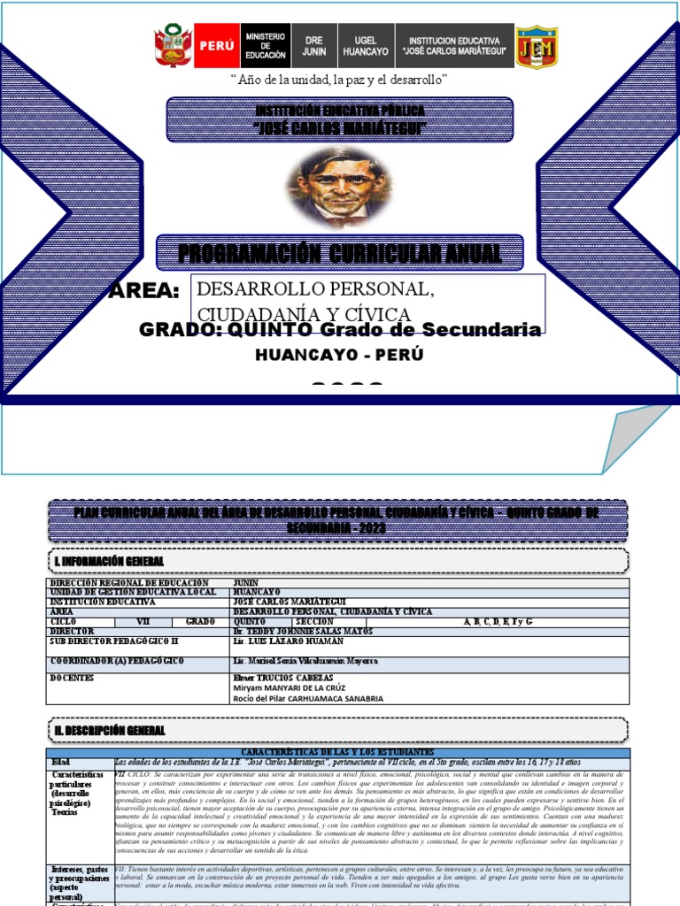 PLAN CURRICULAR ANUAL DEL ÁREA DE DESARROLLO PERSONAL, CIUDADANÍA Y CÍVICA - QUINTO GRADO DE