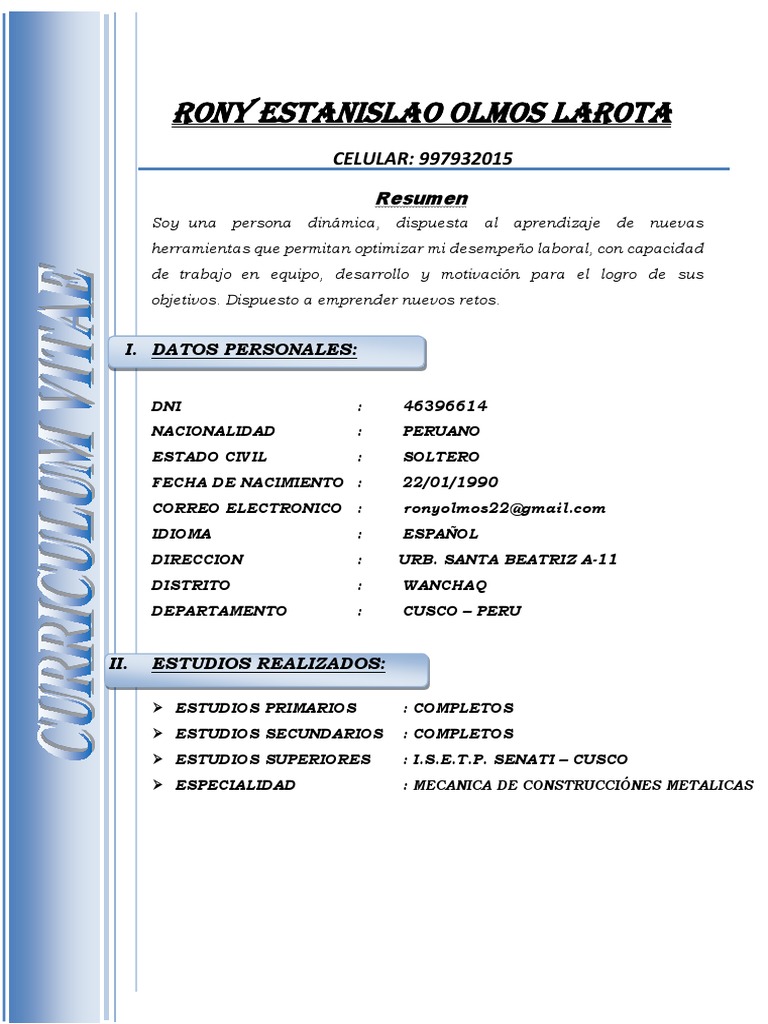 CORREO ELECTRONICO : ronyolmos22@gmail.com