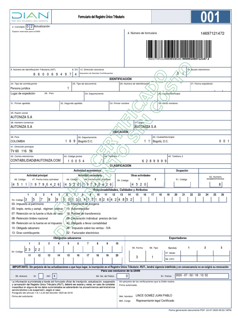 IMPORTANTE: Sin perjuicio de las actualizaciones a que haya lugar, la inscripción en el Registro Único Tributario -RUT-, tendrá vigencia indefinida y en consecuencia no se exigirá su renovación
