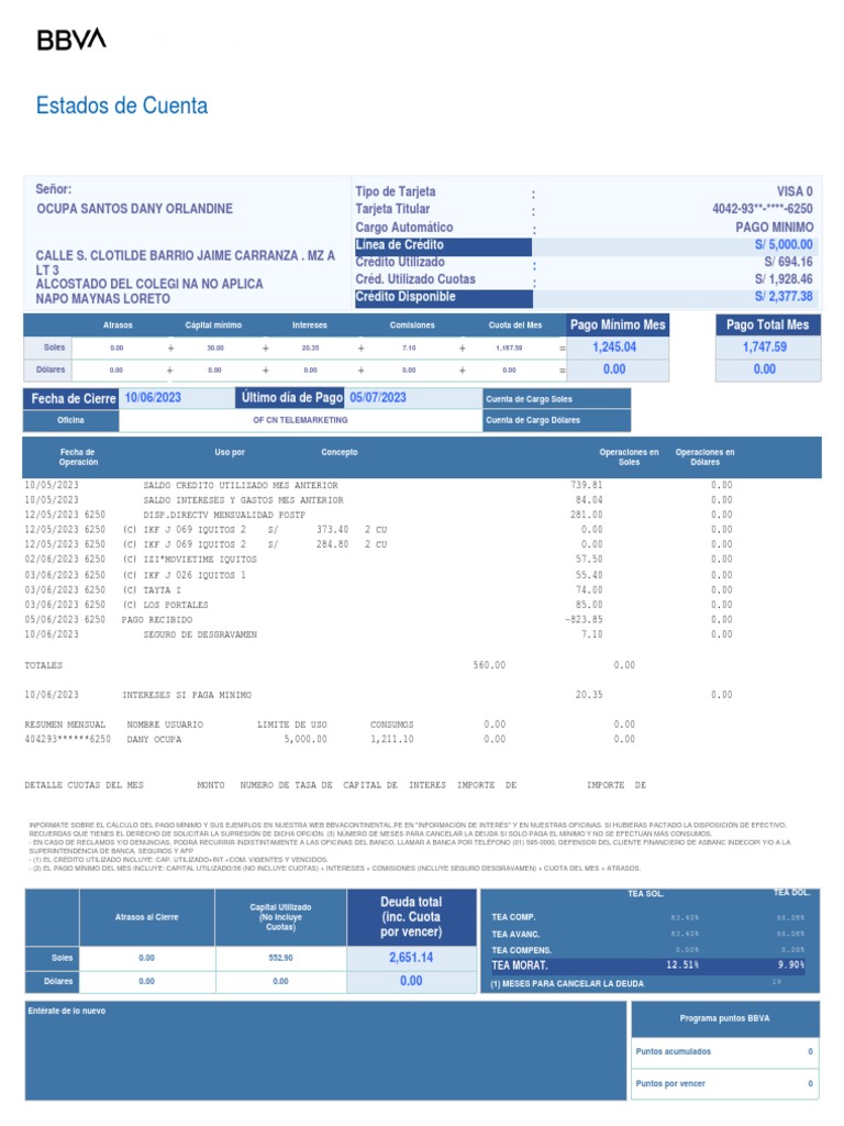 Fecha de Cierre 10/06/2023 Último día de Pago 05/07/2023 Cuenta de Cargo Soles