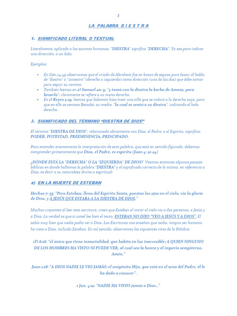 bíblicos en donde hallamos la palabra "DIESTRA" y el significado correcto de la misma, en referencia a