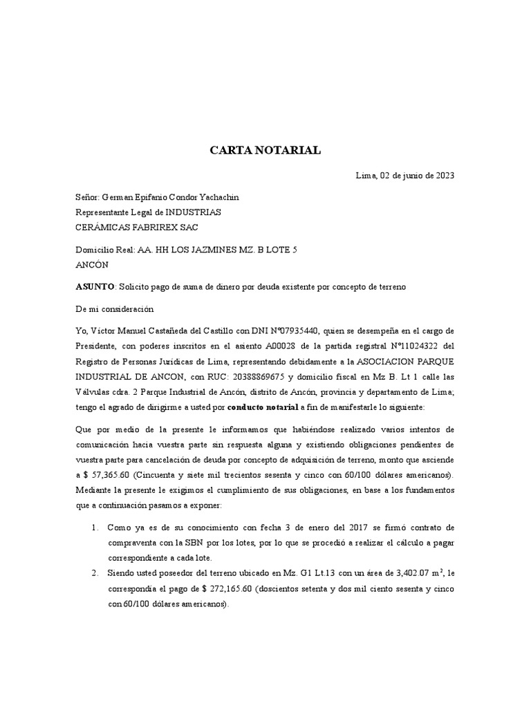 CARTA NOTARIAL