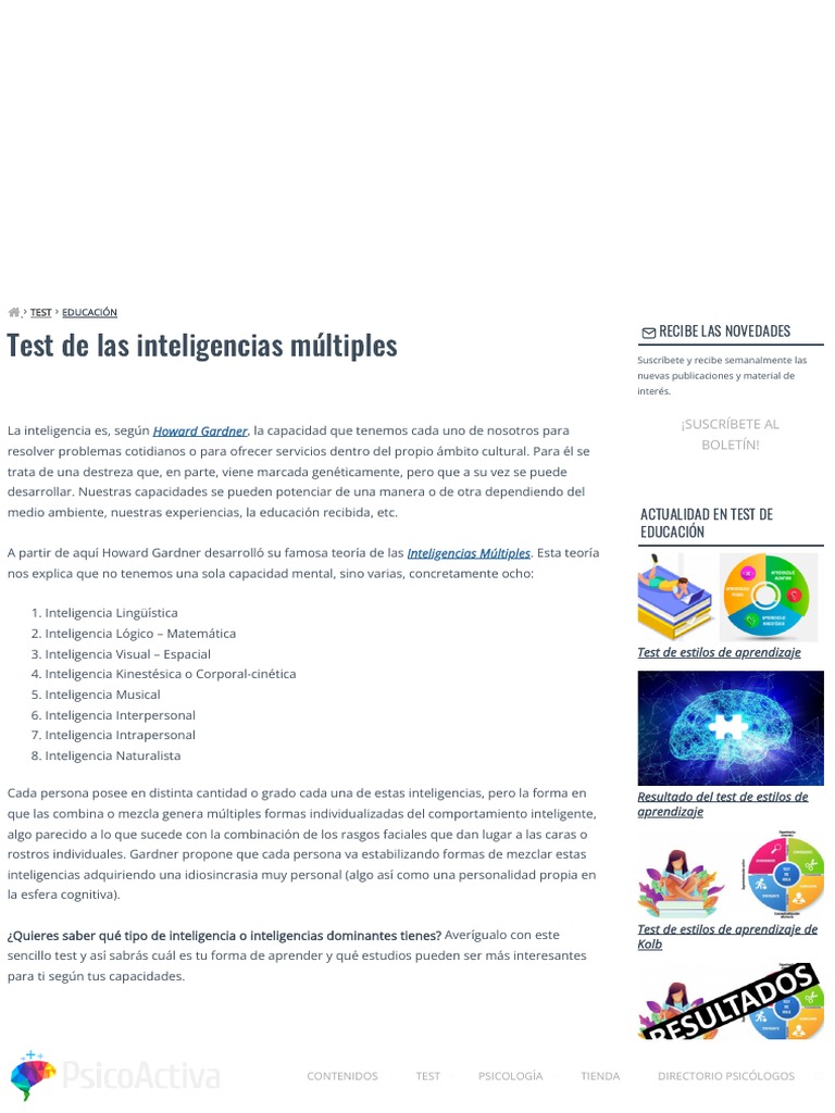 Test de las inteligencias múltiples Suscríbete y recibe semanalmente las