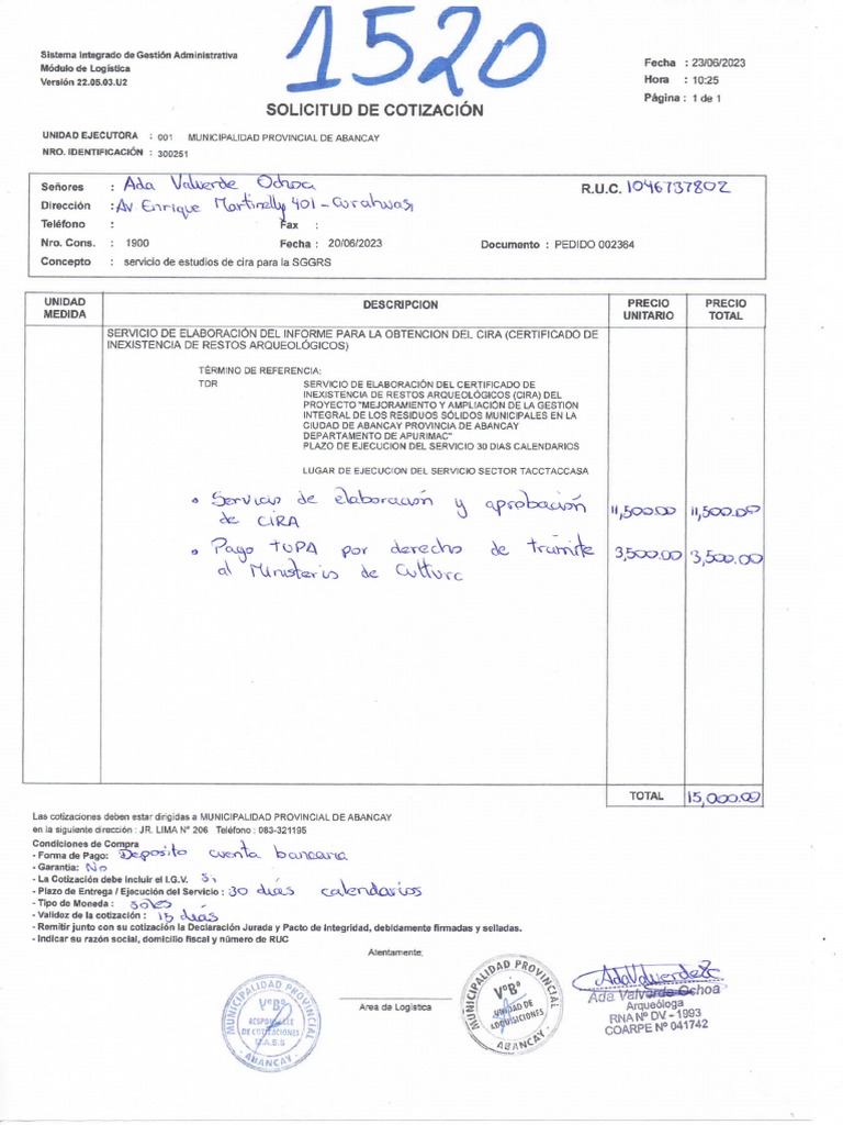 Lis cotacorte debe estar dias 8 MUNICIPALIDAD PROVINGIAL DE ABANCAY