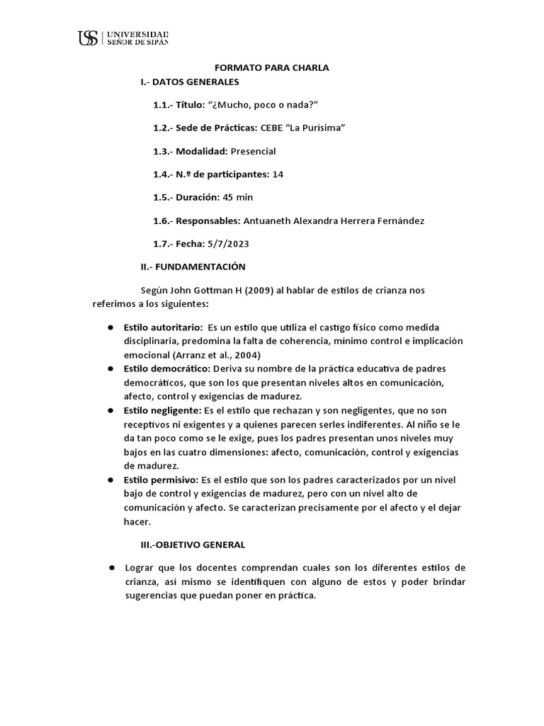 FORMATO PARA CHARLA