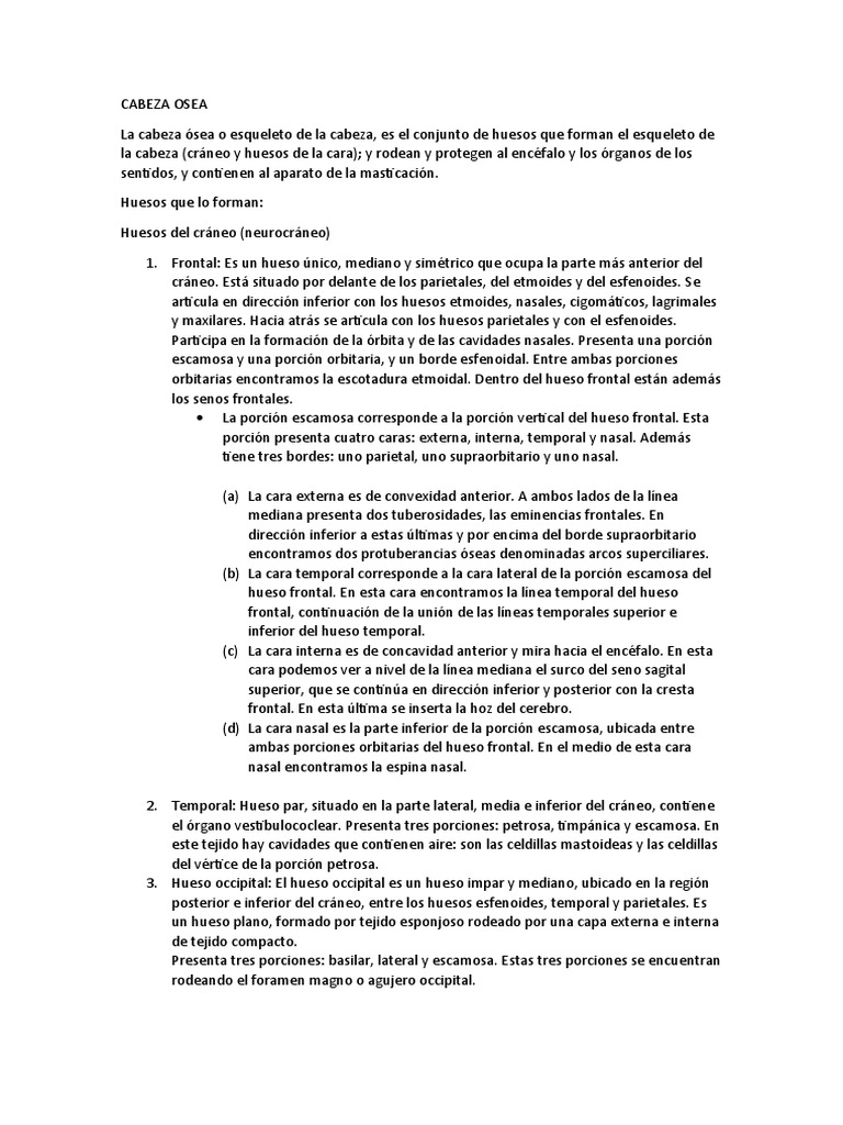 La cabeza ósea o esqueleto de la cabeza, es el conjunto de huesos que forman el esqueleto de