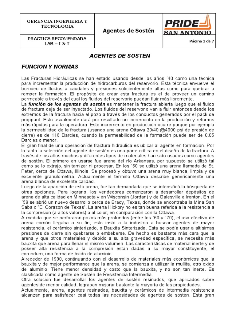 lo tanto la selección del agente de sostén es una parte crítica en el diseño de la fractura. A