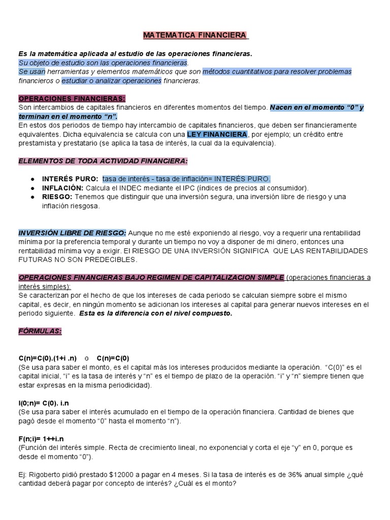 Es la matemática aplicada al estudio de las operaciones financieras.
