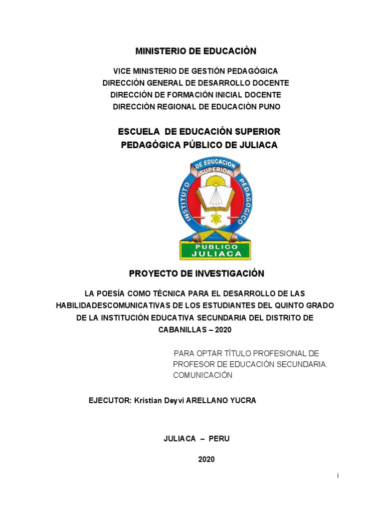 de investigación titulado: LA POESÍA COMO TÉCNICA PARA EL DESARROLLO