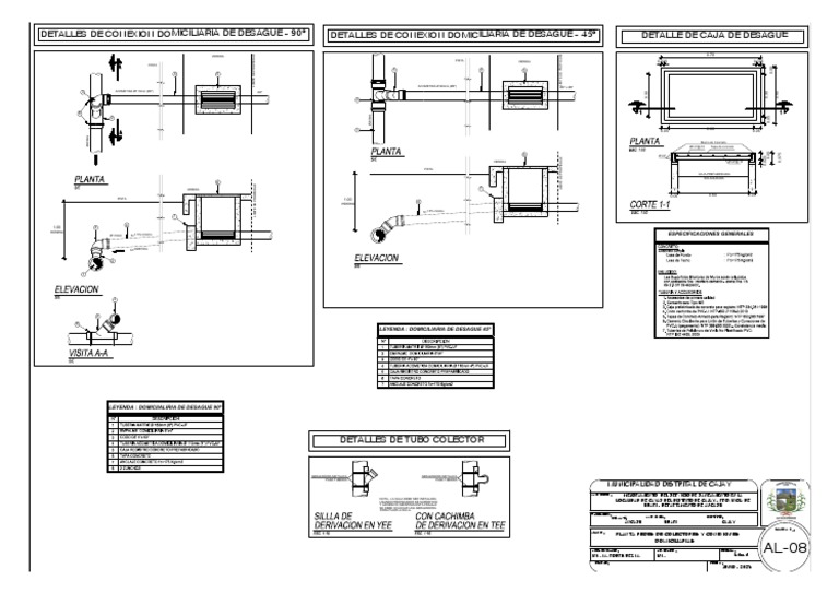 DETALLES DE CONEXION DOMICILIARIA DE DESAGUE - 90º DETALLES DE CONEXION DOMICILIARIA DE DESAGUE - 45º DETALLE DE CAJA DE DESAGUE