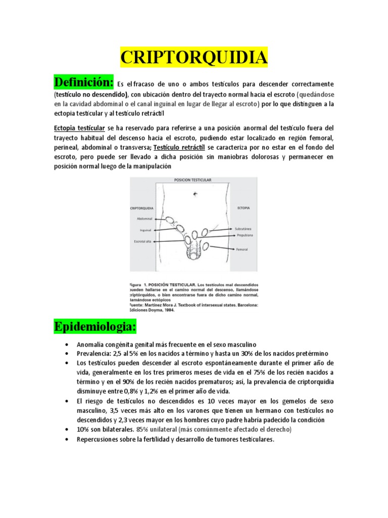 escroto, pero puede ser llevado a dicha posición sin maniobras dolorosas y permanecer en