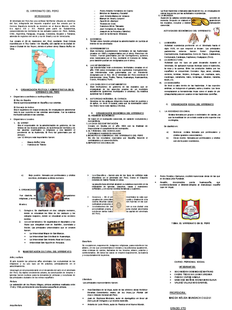 Era la suprema autoridad de España y sus colonias. de ayllus, es decir el curaca, para que la dominación sobre C. ORGANIZACIÓN SOCIAL DEL VIRREINATO